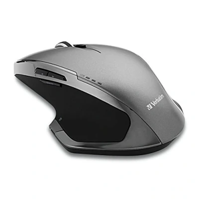 Verbatim Wireless Mouse Optical with Blue LED Lens, 2.4 GHz, Nano Receiver, 8 Buttons, Ergonomic Grey