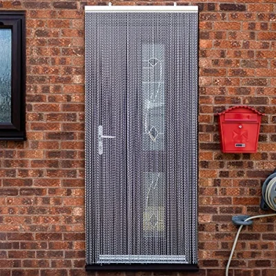 Vermatik Silver 89x210cm Aluminium Chain Fly Screens for Doors. Metal Door Screen Curtain Indoor and Outdoor Use Keeping Out Flies, Insects, Wasps