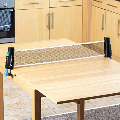 COMPLETE INSTANT TABLE TENNIS SET – Available with additional accessories, these premium retractable table nets can be supplied with bats and table tennis balls for portable mini ping pong. PORTABLE TABLE TENNIS – Perfect for school, office and at home use, the Vermont table tennis net can be extended/retracted up to 6.5ft (2m) for complete versatility. PLAY ANYWHERE ANYTIME - The VERMONT instant table tennis net features a strong clamp system that firmly positions this portable net onto any indoor or outdoor table. HIGH PERFORMANCE ADJUSTABLE NET – This high quality net is sold individually or within a set that includes 2 table tennis bats and 3 table tennis balls. SIMPLE TO STORE & TRANSPORT - This portable retractable table tennis net can be easily transported and stored thanks to its lightweight and compact design.