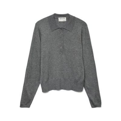 VERO MODA Awsikita LS O Neck Polo Knit Noos, Medium Grey Melange, S