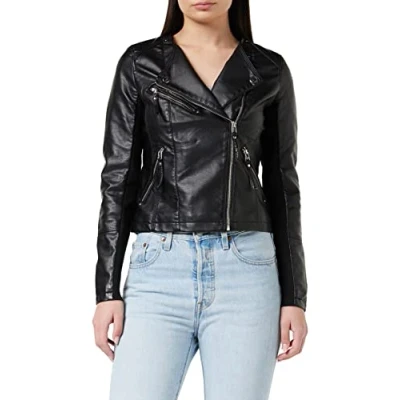 VERO MODA NOS Women's Vmria Fav Short Faux Leather Jacket Noos Not Applicable, Black (Black Black), 16 (Manufacturer Size: X Large)