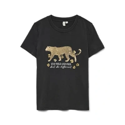Vero Moda Vmfeo O NECK Print Tshirt, Women's, Size: Medium, Black
