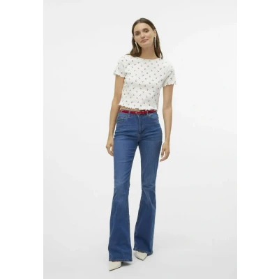 Vero Moda Vmharry Oneck NOOS Print Tshirt, Women's, Size: Large, Snow white