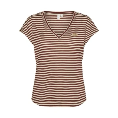 Vero Moda Vmmiva Vneck Print Tshirt, Women's, Size: Small, Fired brick/birch/gold