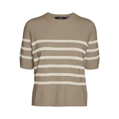 VERO MODA VMSABA Plain SS O Neck Pullover GA NOOS, Silver Mink/Stripes:w Birch, M