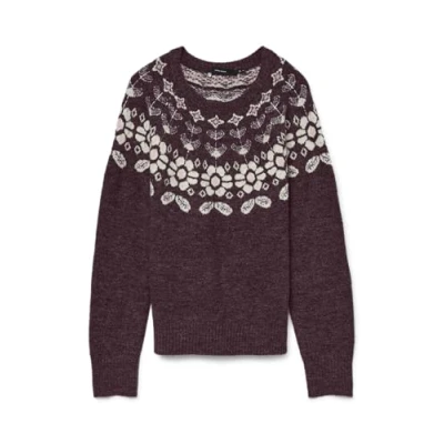 VERO MODA Vmsimone LS Nordic Jumper Ga Rep Boo, Winetasting, S