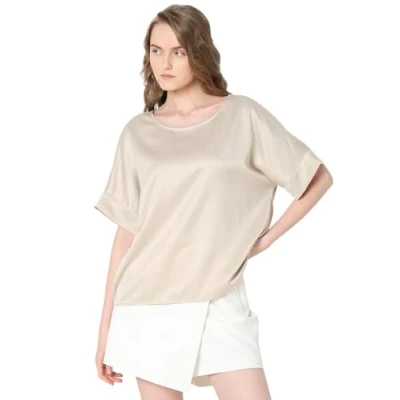 LDS WOVEN TOP 2/4 SLEEVES O-NECK