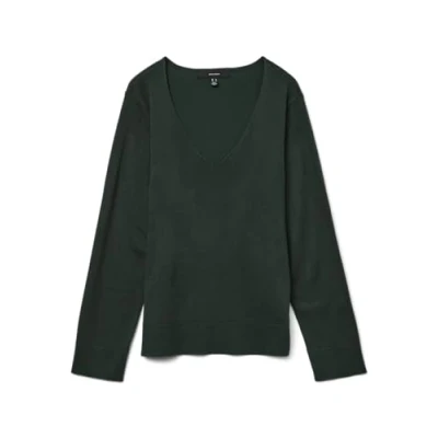 VERO MODA Women's Knitted Jumper Loose Fit V Neck Long Sleeve Ribbed Cuffs, Pine Grove, S
