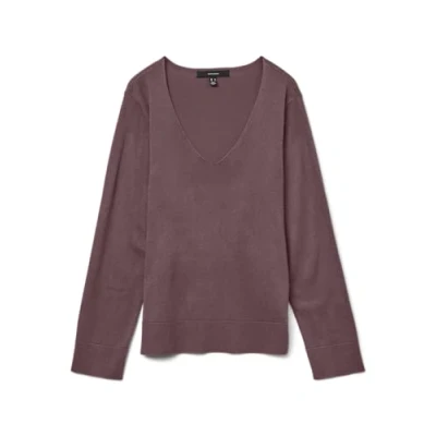 VERO MODA Women's Knitted Jumper Loose Fit V Neck Long Sleeve Ribbed Cuffs, Rose Brown., XS