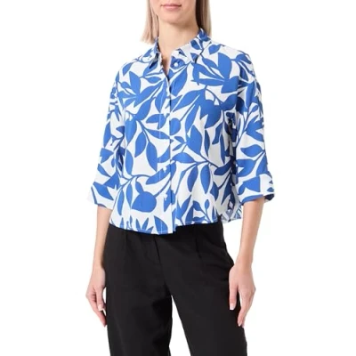 VERO MODA Women's Top, Snow White/AOP: Alisa Mazarine Blue, S