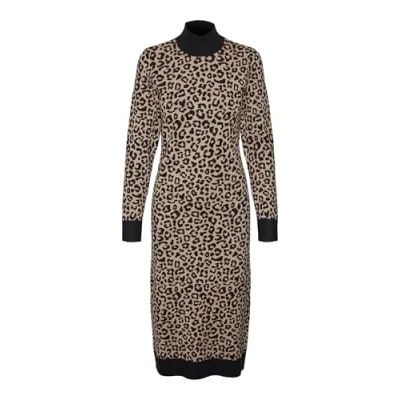 VERO MODA Women's Vmaria Art LS High Neck Calf Dress Ga, Black, M
