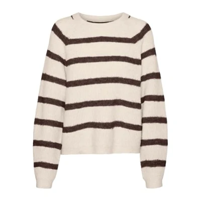 VERO MODA Women's Vmasta LS O Neck Jumper Ga Noos Sweater, Birch/Stripes: Bracken, S