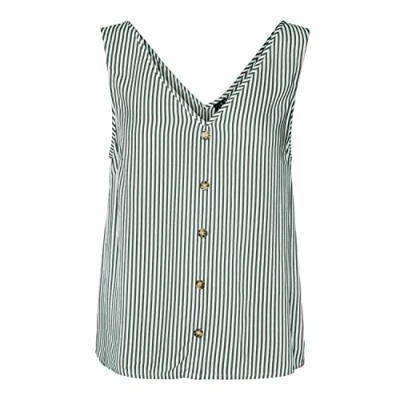 VERO MODA Women's Vmbumpy SL Top WVN Noos, Snow White/Stripes: India Ink, XL