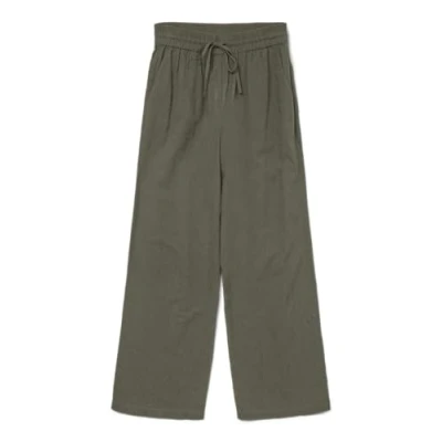 Product Type: Trousers Closing: Drawstring fastening Pockets: Side pockets Waist: Mid waist Extra details : Elastic rise Fit: Wide leg fit