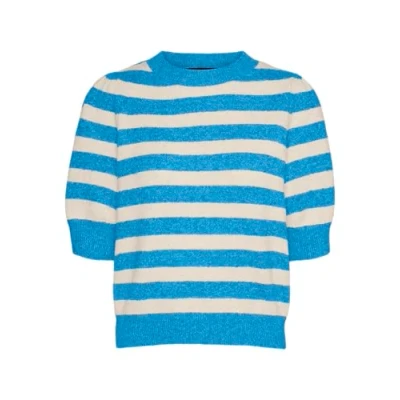VERO MODA Women's Vmdoffy 2/4 O Neck Pullover Ga Noos Sweater, Azure Blue/Stripes: Birch, S