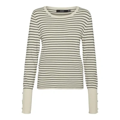 VERO MODA Women's Vmdory LS O Neck Button Pullover Ga Noos Sweater, Birch/Stripes: Black, M