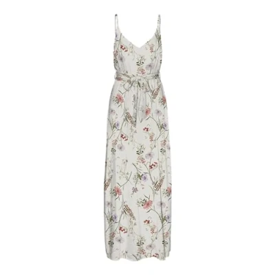 VERO MODA Women's Vmeasy Joy Slit Maxi V Neck Dress WVN Ga, Birch/AOP: vicka, L