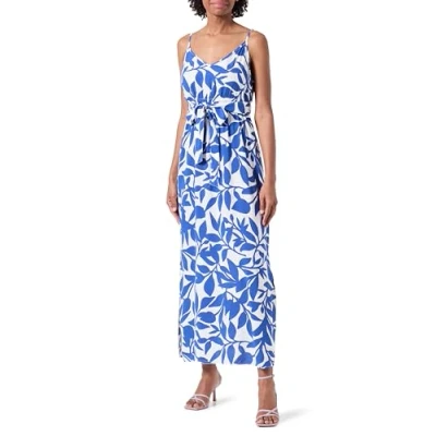 VERO MODA Women's Vmeasy Joy Slit Maxi V Neck Dress WVN Ga, Snow White/AOP: Alisa Mazarine Blue, M