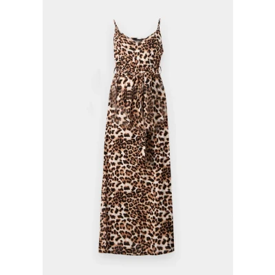 VERO MODA Women's Vmeasy Joy Slit Maxi V Neck Dress WVN Ga, Tan/AOP: Leo, XS
