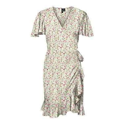VERO MODA Women's Vmemma Henna 2/4 Short Wrap Dress WVN Ga, Sprucestone/AOP:Mille Flower, XS