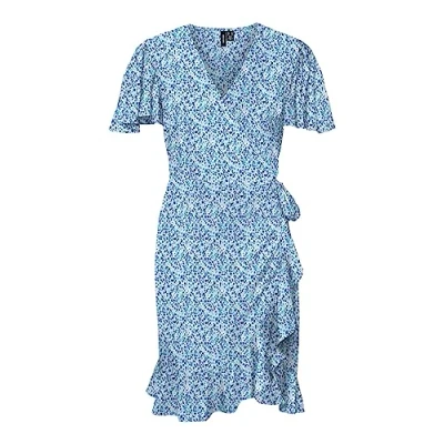 VERO MODA Women's Vmemma Henna SS Short Wrap Dress WVN Ga, Skyway/AOP: Caro Flower, S
