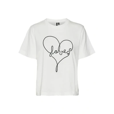 VERO MODA Women's Vmfea Mette SS Top Box JRS Ga T Shirt, Snow White/Detail: Love, M