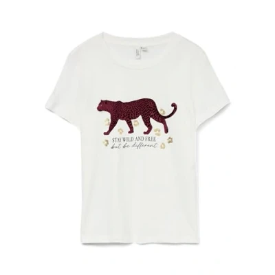 VERO MODA Women's Vmfeo S/S O Neck T Shirt JRS Btq Ga, Snow White, L