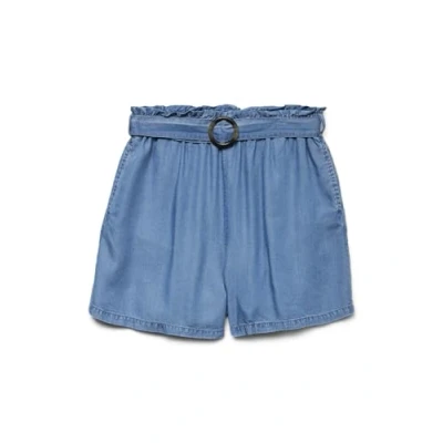 VERO MODA Women's Vmfleur Hw Paperbag Belt Shorts Ga, Medium Blue (Medium Denim), M