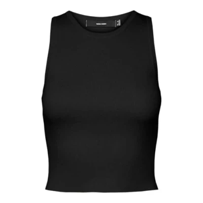 VERO MODA Women's Vmginny Sl O Neck Crop Top Noos, Black, L
