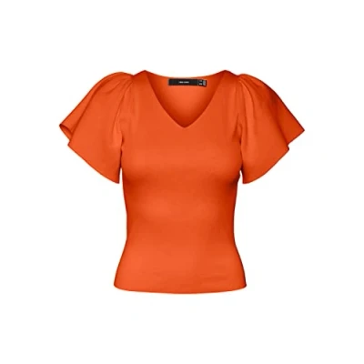 VERO MODA Women's Vmginny SS V Neck Pullover Noos Sweater, Scarlet Ibis, L