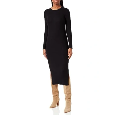 VERO MODA Women's Vmglory Rib LS O Neck Calf Dress Ga Noos Dress, Black, M