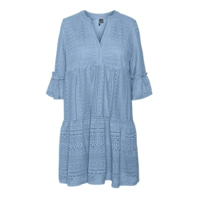 VERO MODA Women's Vmhoney Lace 3/4 V Neck Tunic WVN midi Dress, Dusk Blue, L