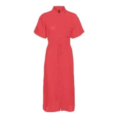 VERO MODA Women's Vmiris S/S Shirt Calf Dress WVN Ga Noos Keid, Cayenne, L