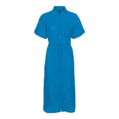 VERO MODA Women's Vmiris S/S Shirt Calf Dress WVN Ga Noos Keid, Ibiza Blue, L