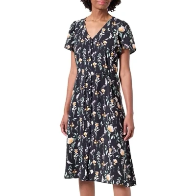 VERO MODA Women's Vmjosie SS Calf Shirt Dress WVN Ga Keid, Black/AOP: Hazel, S