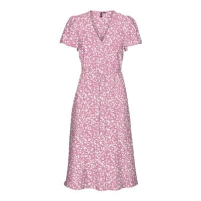 VERO MODA Women's Vmjosie SS Calf Shirt Dress WVN Ga Keid, Pink Cosmos/AOP: hucca, S