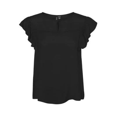 VERO MODA Women's Vmkatja SL Frill WVN Top, Black, S