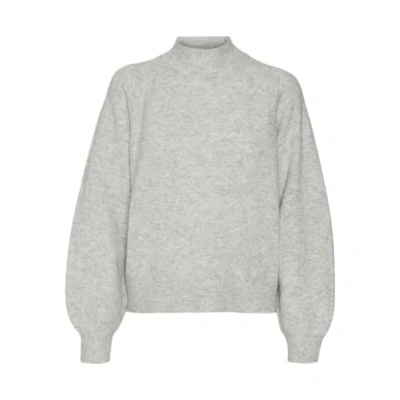 VERO MODA Women's Vmleaf Ls High Neck Pullover Ent Knitted Jumper, Light Grey Mix, S