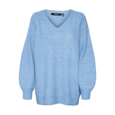 VERO MODA Women's Vmleaf LS Long V Neck Pullover Ent Knitted Jumper, Blue Jasper/Detail: w. Melange, S