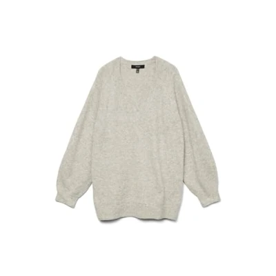 VERO MODA Women's Vmleaf LS Long V Neck Pullover Ent Knitted Jumper, Light Grey Mix, XS