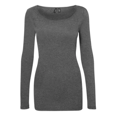 VERO MODA Women's Vmmaxi My Ls Soft Long U Neck Noos' Sleeved Shirt, grey (medium blend), S