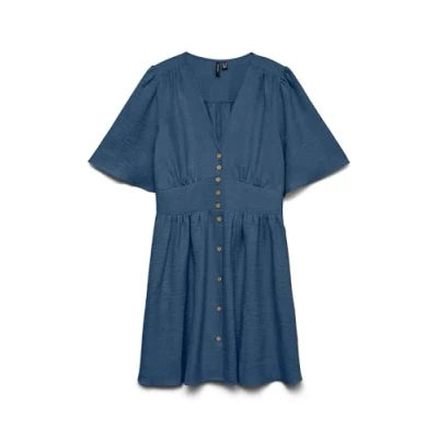 VERO MODA Women's Vmmelaney 2/4 Short Dress WVN Noos, Dark Denim, XS