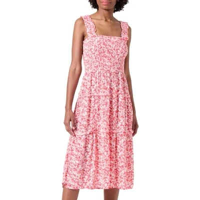 VERO MODA Women's Vmmenny Sl Smock Calf Dress WVN Ga Noos Long, Cayenne/AOP:huki, S