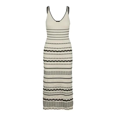 VERO MODA Women's Vmminou Sl Calf Lenght Dress midi, Birch/Detail: w. Black, XS