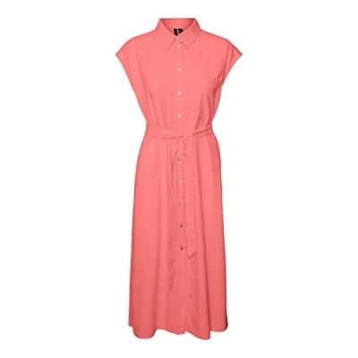 VERO MODA Women's Vmmymilo Sl Calf Shirt Dress WVN Ga, Georgia Peach, S