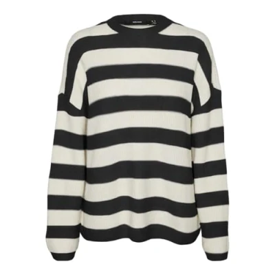 VERO MODA Women's Vmnatahlie LS O Neck Pullover Ga Noos Sweater, Black/Detail:Small Stripes Birch, XL