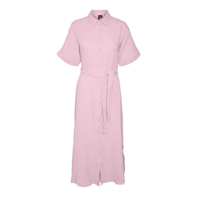 VERO MODA Women's Vmnatali Nia 2/4 Calf Shirt Dress WVN, Bonbon, L