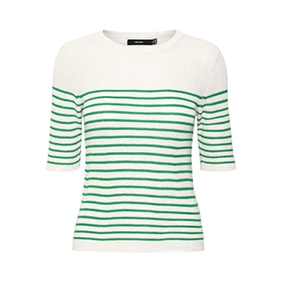 VERO MODA Women's Vmnewlexsun 2/4 Tight O Neck Blou Ga Rep Sweater, Snow White/Detail:w Bright Green Stripes, M
