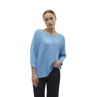 VERO MODA Women's Vmnora 3/4 Boatneck Blouse Noos Knitted Jumper, Bonnie Blue/Detail: w. Melange, M