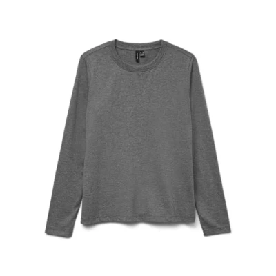 VERO MODA Women's Vmpaulina Ls T Shirt Ga JRS Noos, Medium Grey Melange, M